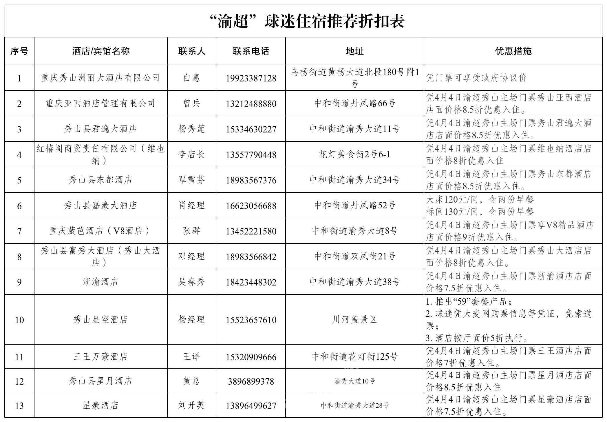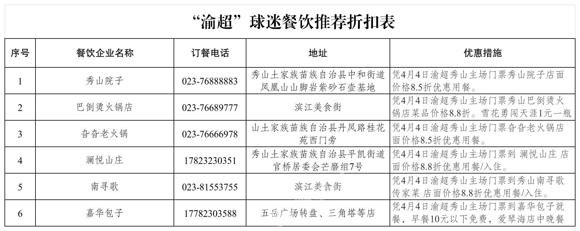 据了解,此次活动,旨在以赛事引流、消费赋能、文旅增效,在丰富市民与游客假期生活,提振市场消费信心的同时,为春日秀山注入新活力。活动以4月4日渝超联赛秀山主场赛事为引爆点,推出球迷专属福利:13家酒店、6家餐饮门店推出优惠套餐,凭赛事门票可享川河盖索道免费往返、西街手作与餐饮折扣;重百、秀城外滩、大华三大商超同步开展踏青促销,服饰折扣、满额赠礼、免费加工、以旧换新等惠民举措覆盖全品类;川河盖、西街等景区推出踏青套餐与体验优惠,串联边城、龙凤花海等景点,打造“观赛+购物+出游+美食”一站式体验。