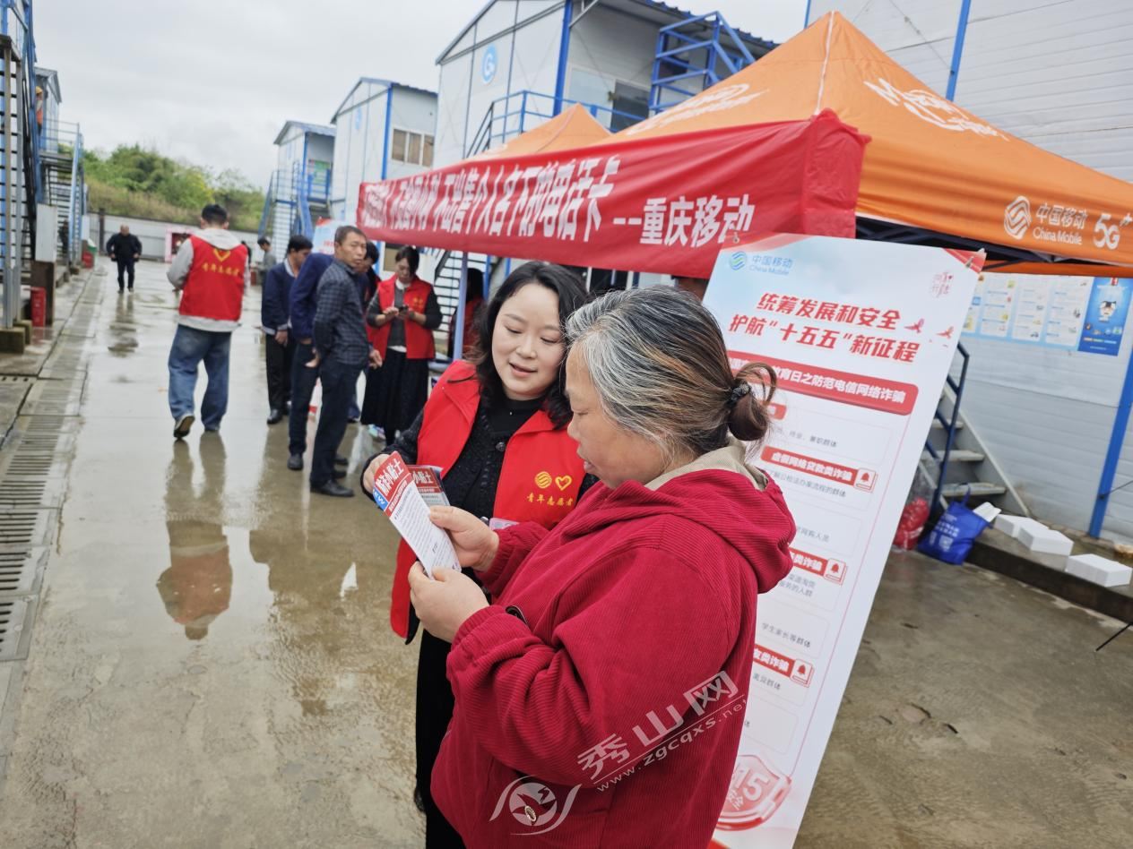 秀山网讯 4月15日,重庆移动秀山分公司联合中建二局秀山安置房项目部,围绕“统筹发展和安全,护航‘十五五’新征程”主题,开展反诈宣传专项活动,切实筑牢项目工地安全防线,增强一线务工人员反诈防骗意识与能力。