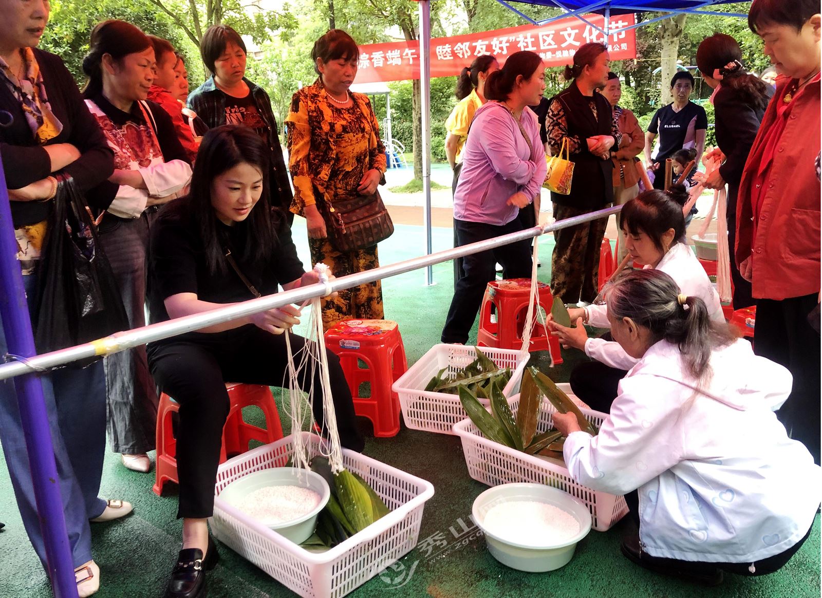 环物委成员召集小区居民欢度端午佳节。中和街道党工委供图