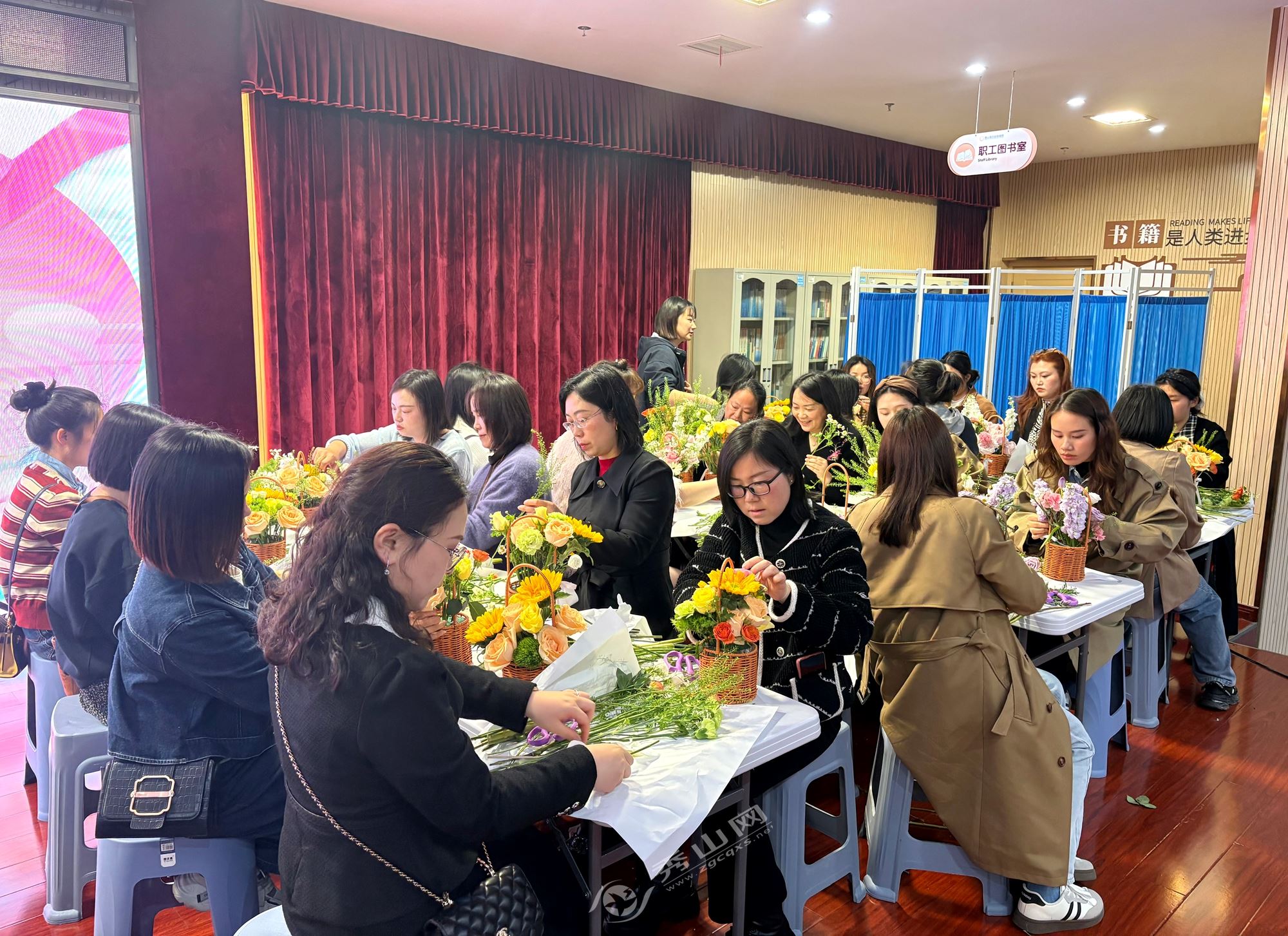 随后,温馨雅致的插花体验环节拉开帷幕。大家在专业指导下修剪花枝、搭配花材,在动手创作的过程中舒缓压力、陶冶情操。同时,围绕女性生育力保护、早孕关爱、普惠托育服务等群众关心的热点话题,畅所欲言、交流心得,凝聚起服务女性健康、助力优生优育的共识。