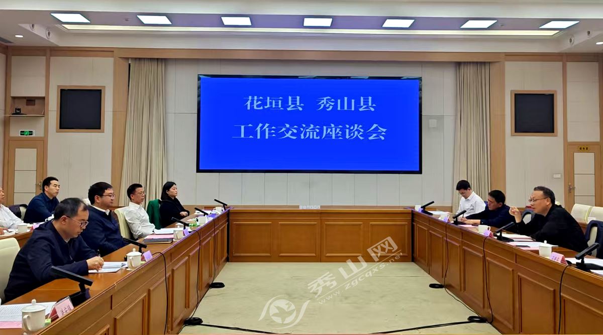 秀山网讯 4月16日下午,花垣县委常委、县政府常务副县长杨昌松率队来秀考察调研通道经济、产业发展、园区建设、文旅融合工作。秀山县委常委、县政府常务副县长代春鹏陪同考察并主持召开座谈会,两县相关部门、乡镇及企业负责人参加活动。