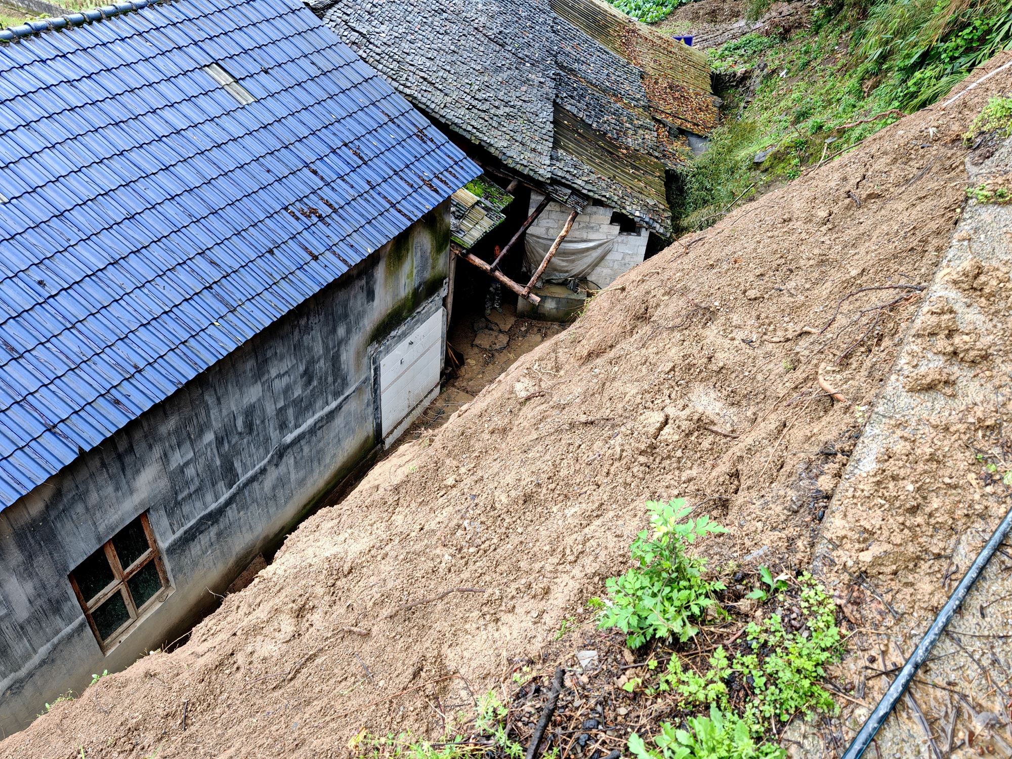 经专业勘测,这个风险体总方量约120立方米,坡体稳定性差,直接威胁坡下群众的生命财产安全,当即组织群众通过投靠亲友的方式紧急转移。当天下午3点,该处边坡左侧坡顶约8米处突发垮塌,垮塌方量约20立方米,导致民房的屋后卫生间被泥土掩埋。险情发生后,县应急管理局、县规划自然资源局通过141基层智治平台同步获取信息,迅速组建工作组赶赴现场,会商研判后续处置方案。