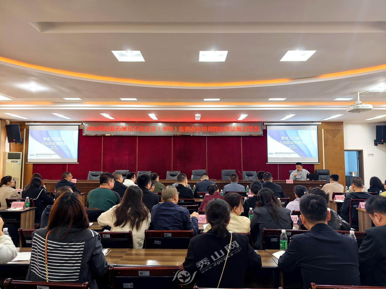 秀山网讯 近日,县市场监管局组织召开2026年药械化不良反应(事件)监测业务培训暨法律法规宣贯会,进一步提升全县监测工作水平,强化医疗机构依法报告意识,保障公众用药用械用妆安全。重庆市药品不良反应监测中心资深专家授课,全县各医疗机构分管负责人及业务骨干100余人参训。