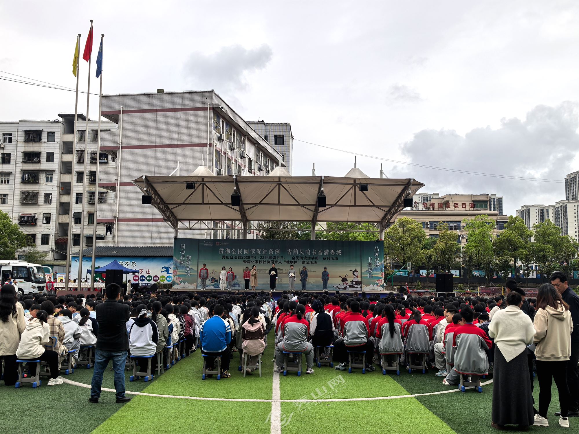 秀山网讯 4月23日,“同心武陵·渝好品读 品读边城·书香秀山”2026年全民阅读月系列活动启动仪式在民族中学举行。