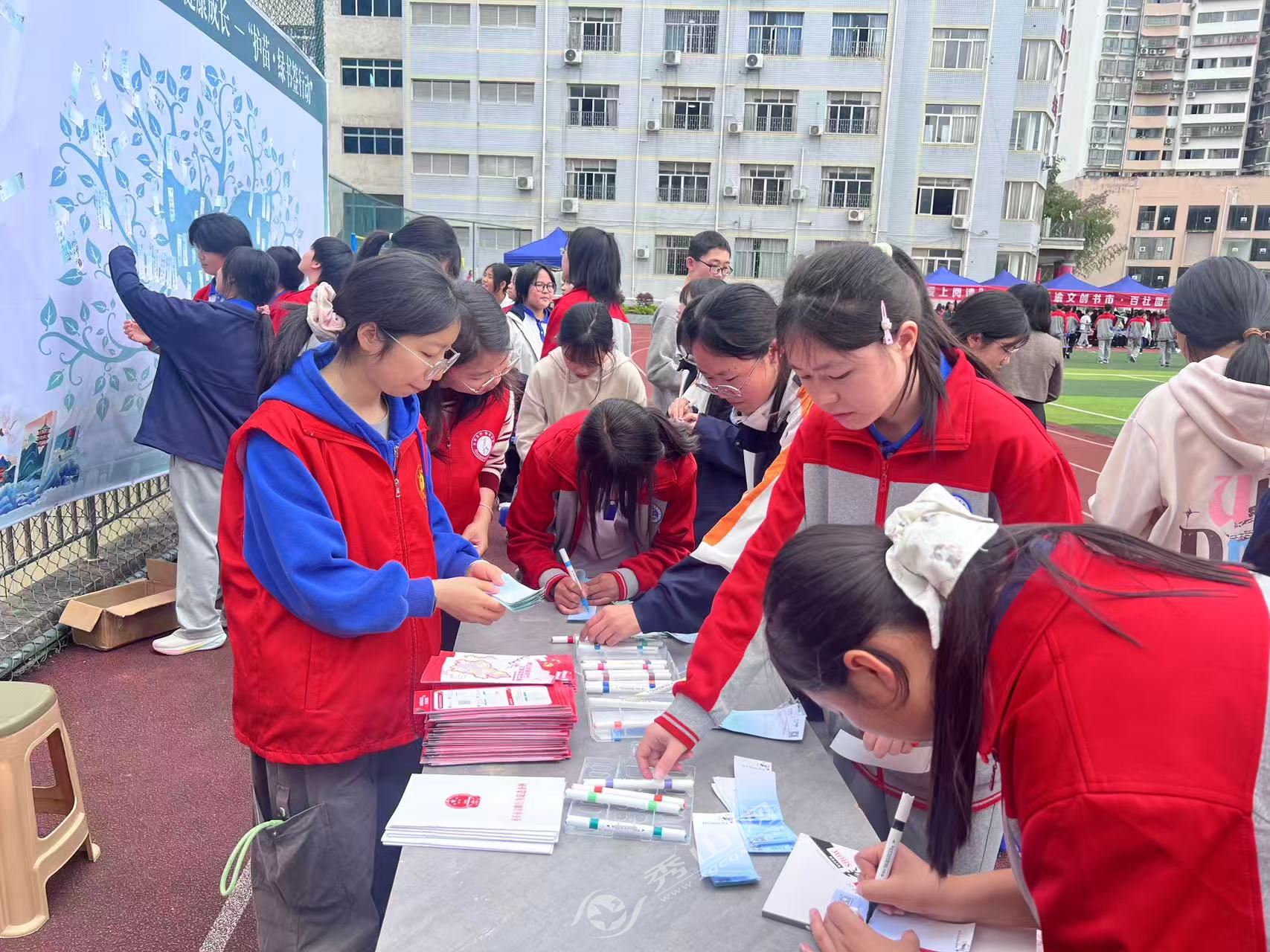 活动现场,志愿者们将数千册图书分类整理,从经典文学到本土文化,从科普读物到教辅资料,整齐陈列于展桌,为师生们阅读提供方便。“为了让同学们快速找到感兴趣的书,我们提前熟悉了图书分类体系,还特意标注了本土文学作品,方便大家更好了解秀山文化。”志愿者小李一边向同学们介绍书籍,一边细心整理书架。