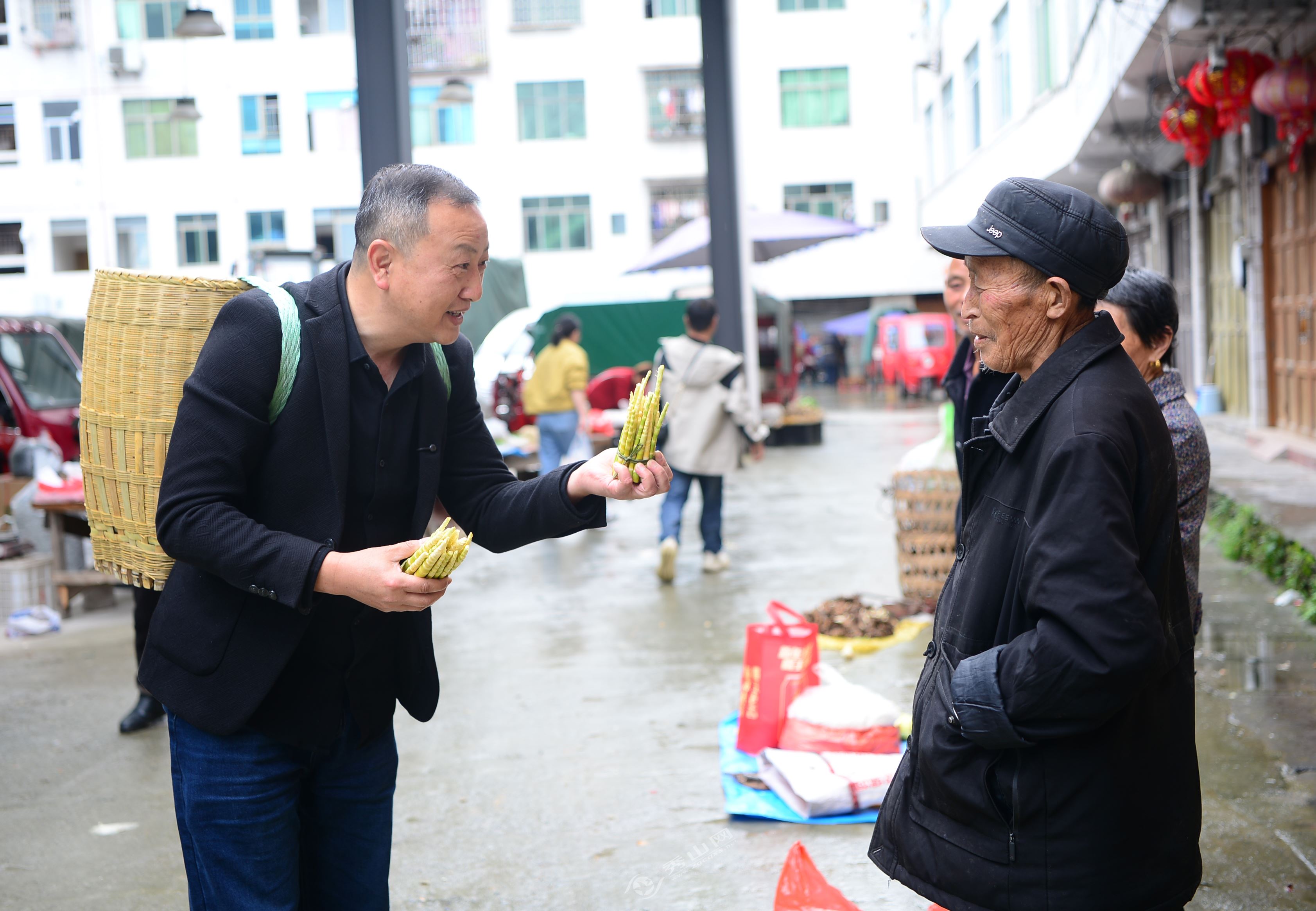 秀山网讯 4月29日一早,秀山石耶镇热闹的集市迎来了一位熟客,他背着竹背篓,说着一口地道乡音,穿梭于摊位间。