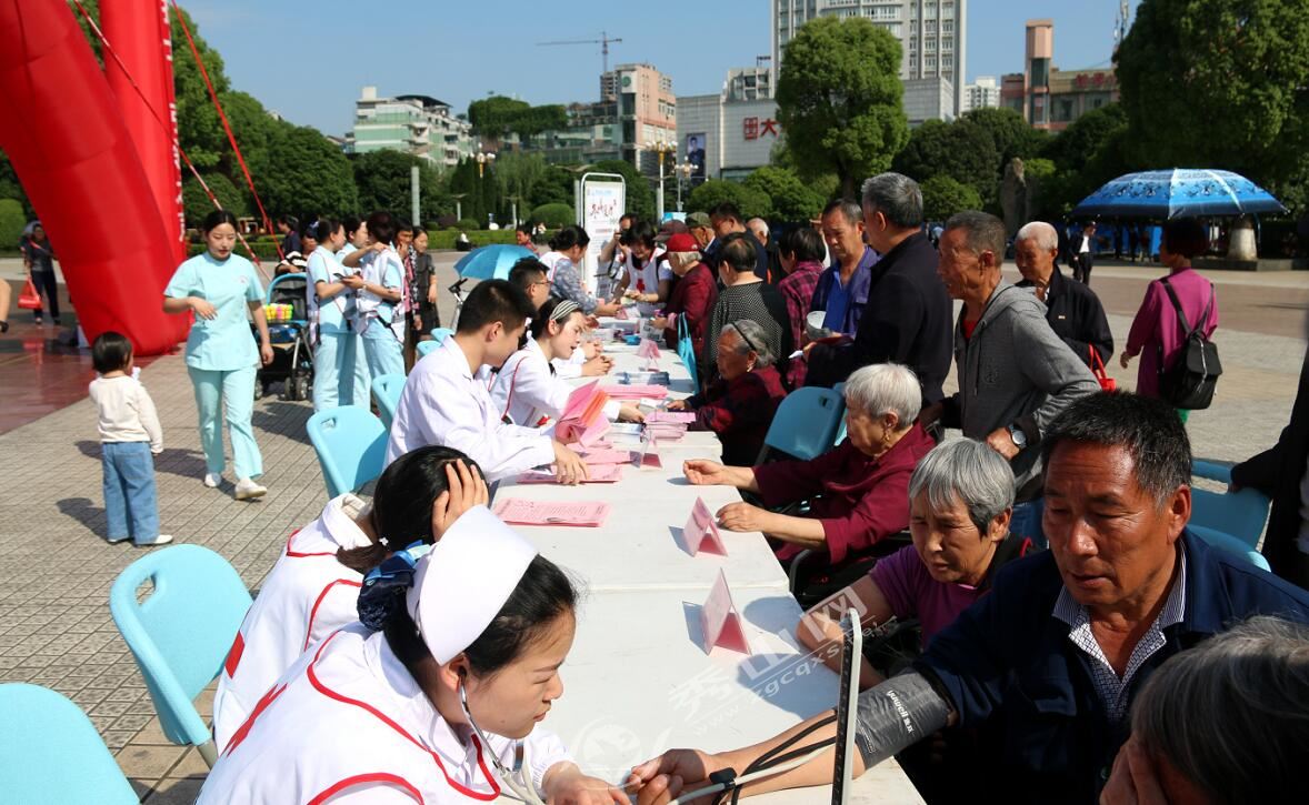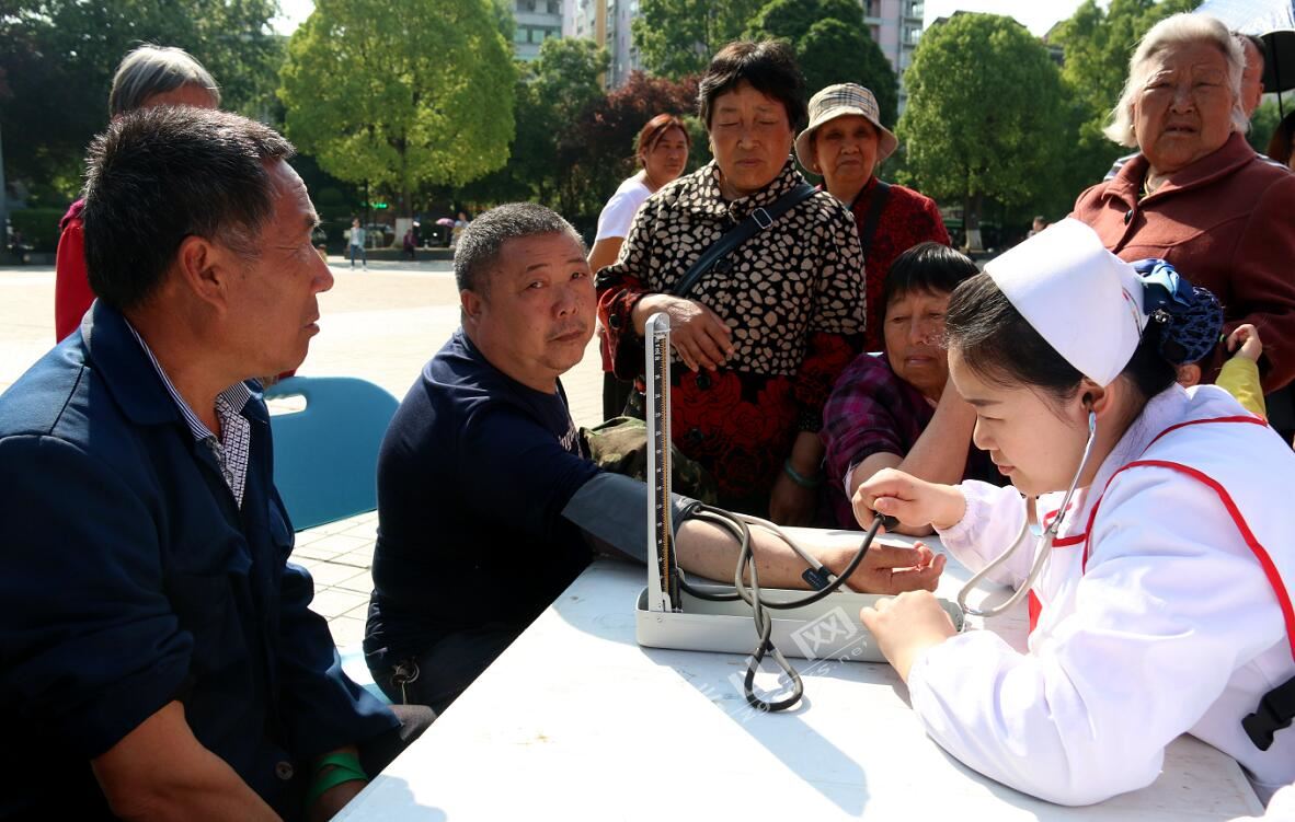 活动一侧还设置了义诊咨询台,医护人员免费为现场群众量血压、测血糖等,并对群众提出的问题给出了耐心、细致、科学的指导。