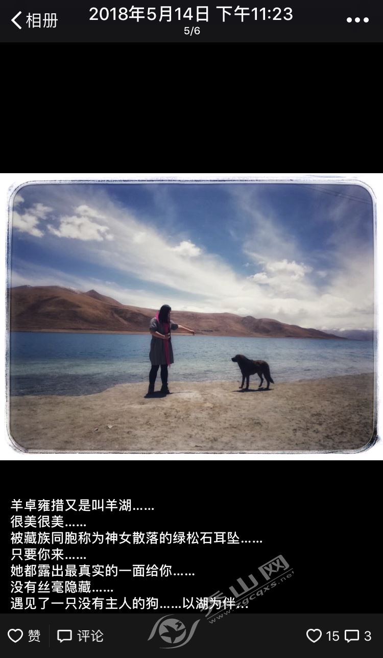“每一次改变,都是想遇见更好的自己。这次西藏、青藏之行,想分享的太多。特意挑了这张在羊湖的照片,因为当时很幸运,在圣湖旁边邂逅这只可爱的狗。那时,我手里还抱着跟着我走遍地北天南的胡巴。狗狗生长在如此圣洁之地,温暖,不胆怯,慢慢地向着我靠近,我们算是‘同类’吧。旅行是用缓慢的脚步,去感受每一处我喜欢的世界。”今年5月,“胡巴”辞掉人生第一份工作,没有立刻投入下一段工作中,而是选择放慢脚步,给自己放个假,去川藏线和青藏线旅行,享受一路风景。旅行归来,开始慢慢找工作的她,也收到了心仪公司的offer。