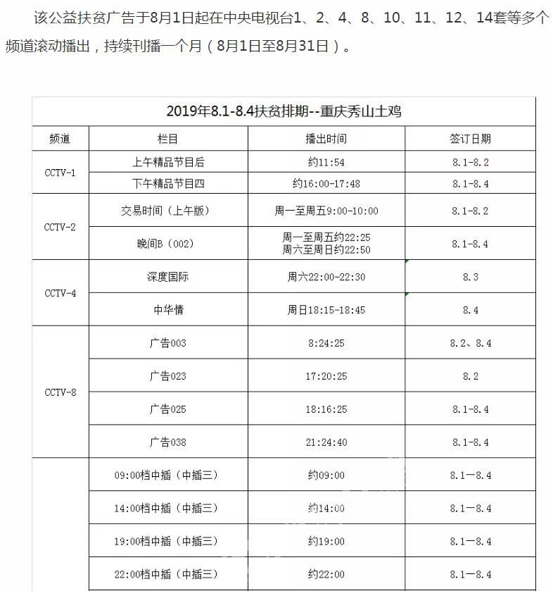 秀山土鸡要霸屏央视多个频道,持续一个月!
