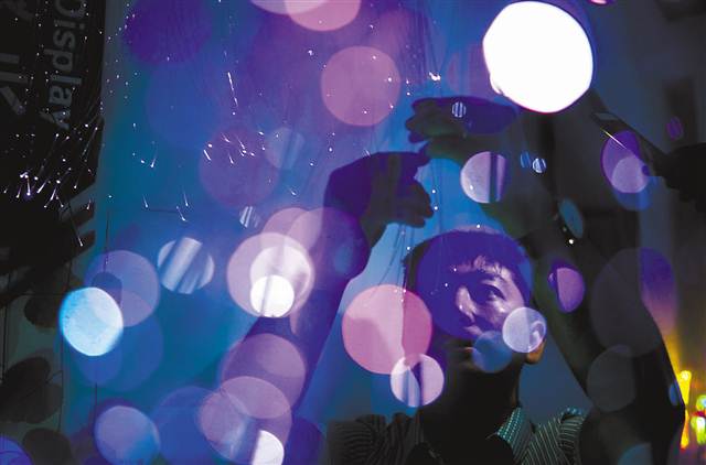 江北区港城工业园重庆光遥光电科技有限公司,工作人员正调试“光纤垂帘”。