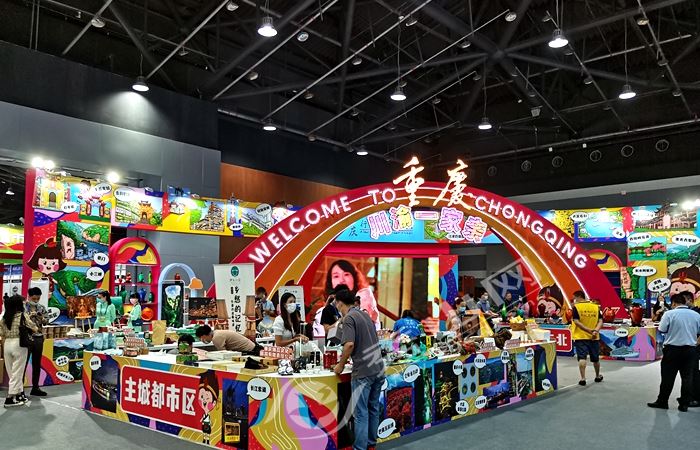 重庆市文化旅游委在四川省国际旅游交易中心D1馆搭建了250余平米的特装展厅。秀山文化旅游委组织多家文旅企业带上宣传画册、宣传折页、土家织锦、秀山竹编、紫砂石壶等文创产品参加活动。展厅内全是精美商品,精致的文旅宣传品满目全新,集中展示了山城文化旅游,更加吸引四川市民。
