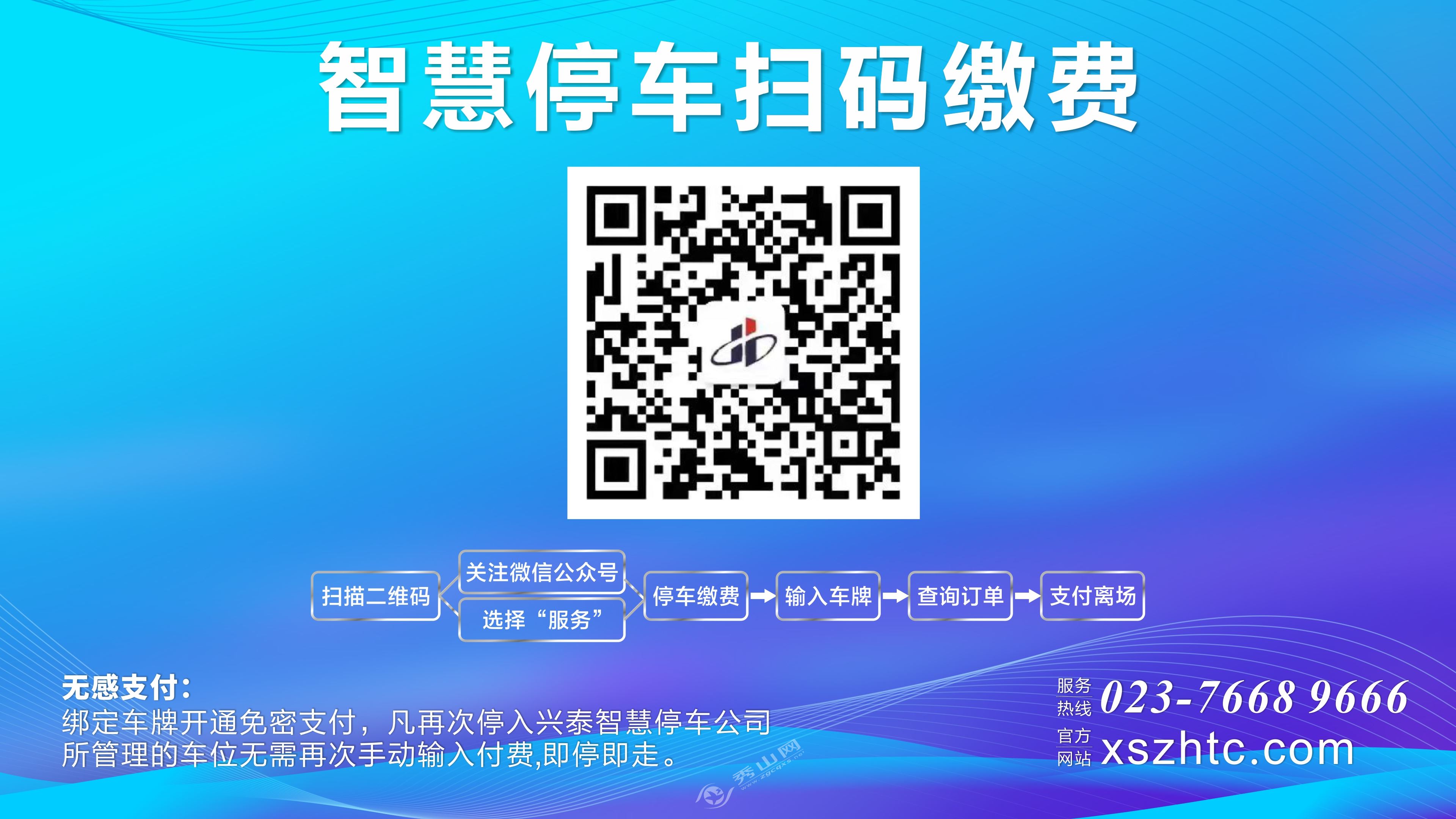 据介绍,县城道路智慧停车泊位采取电子收费的方式,方便快捷,实现停车后的“无现金、透明、公开”收费模式。 市民可以通过关注秀城集团下属兴泰智慧停车服务有限公司官方微信公众号——“秀山县兴泰智慧停车服务有限公司”进行自助缴费,或者通过泊位上的二维码及路边公示牌上的二维码进行自助缴费。
