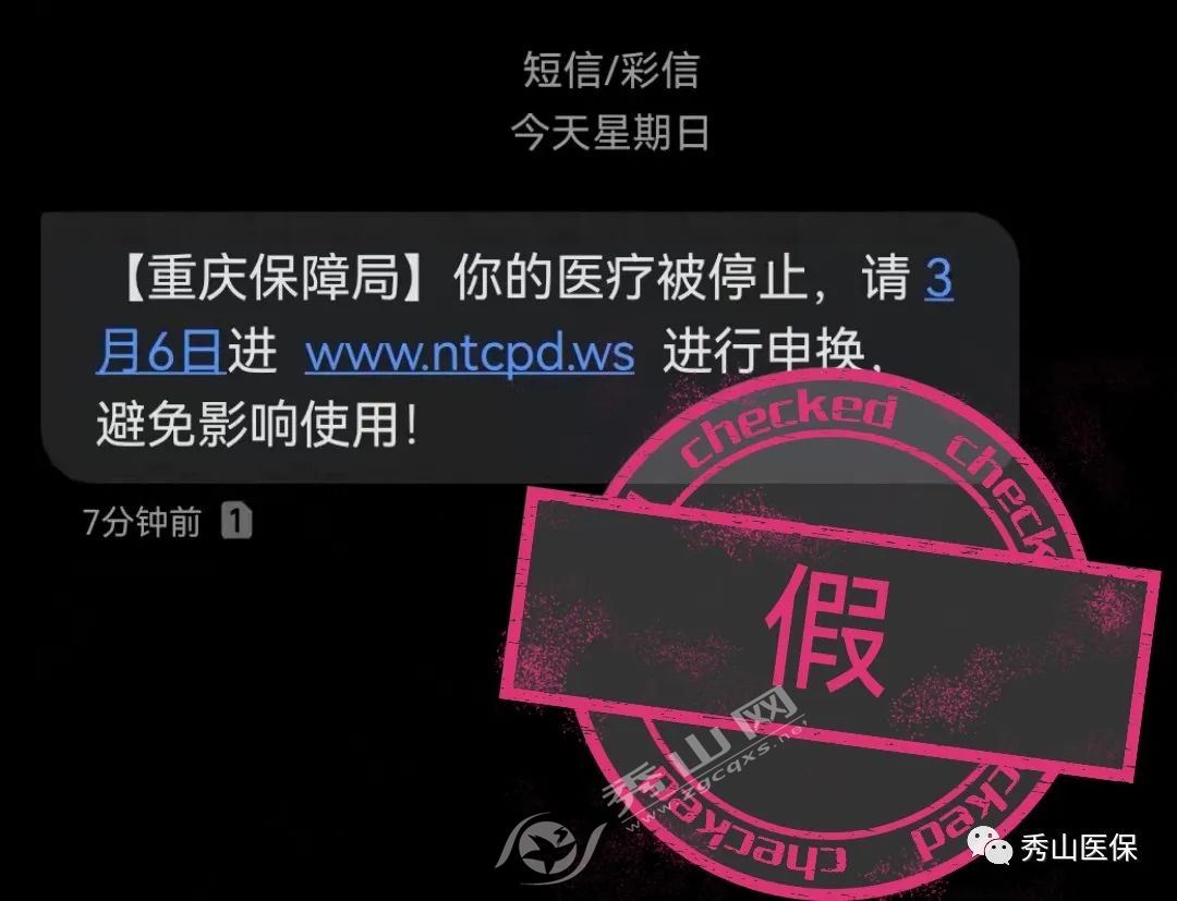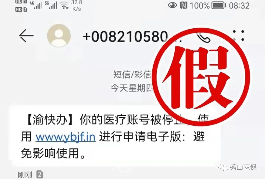 秀山网讯 近期,有不法人员以“重庆保障局”“渝快办”等名义发送诈骗短信,基本内容是:“你的医疗被停止,请打开短信中的链接进行申换,登录网站填写个人信息、身份证号、手机号等信息”,这个是一种新型诈骗,大家一定要多加防范。