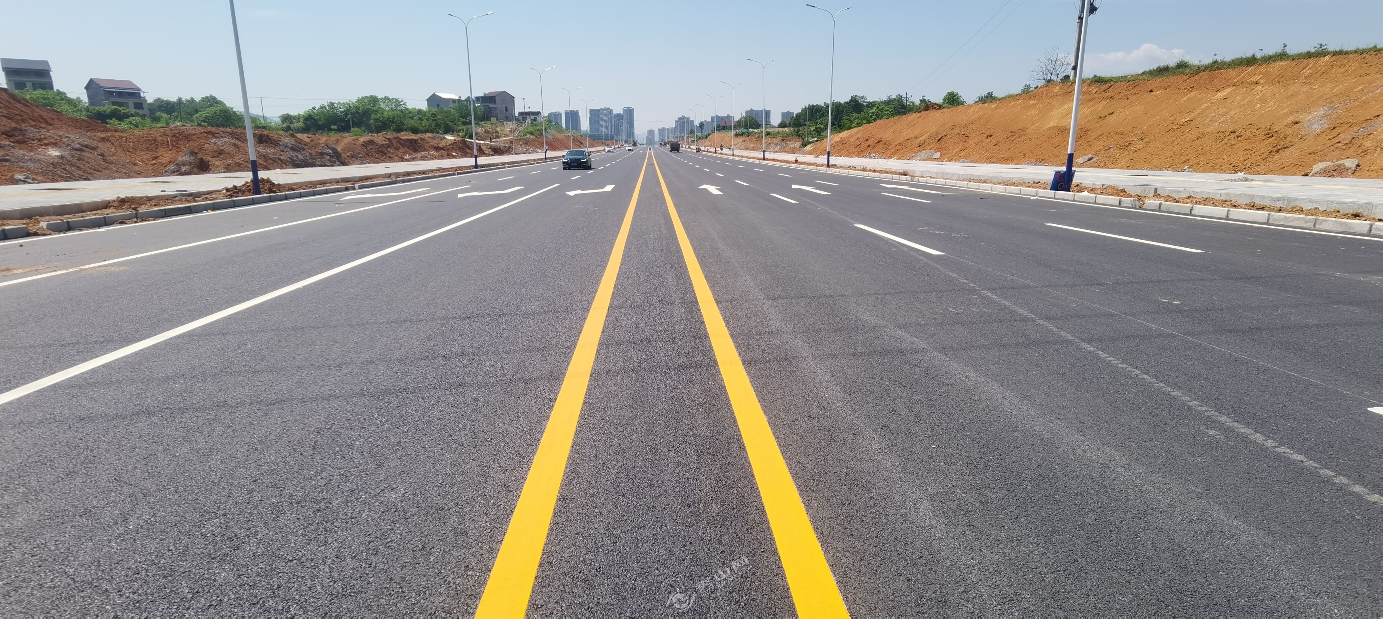 5月5日,记者在黄杨大道北段延伸段施工现场看到,该路段已完成路面沥青混凝土铺设及标线划定和照明灯饰安装,正抓紧人行道彩板扫尾施工,整条道路宽敞、平坦,接下来,将进行道路绿化施工。