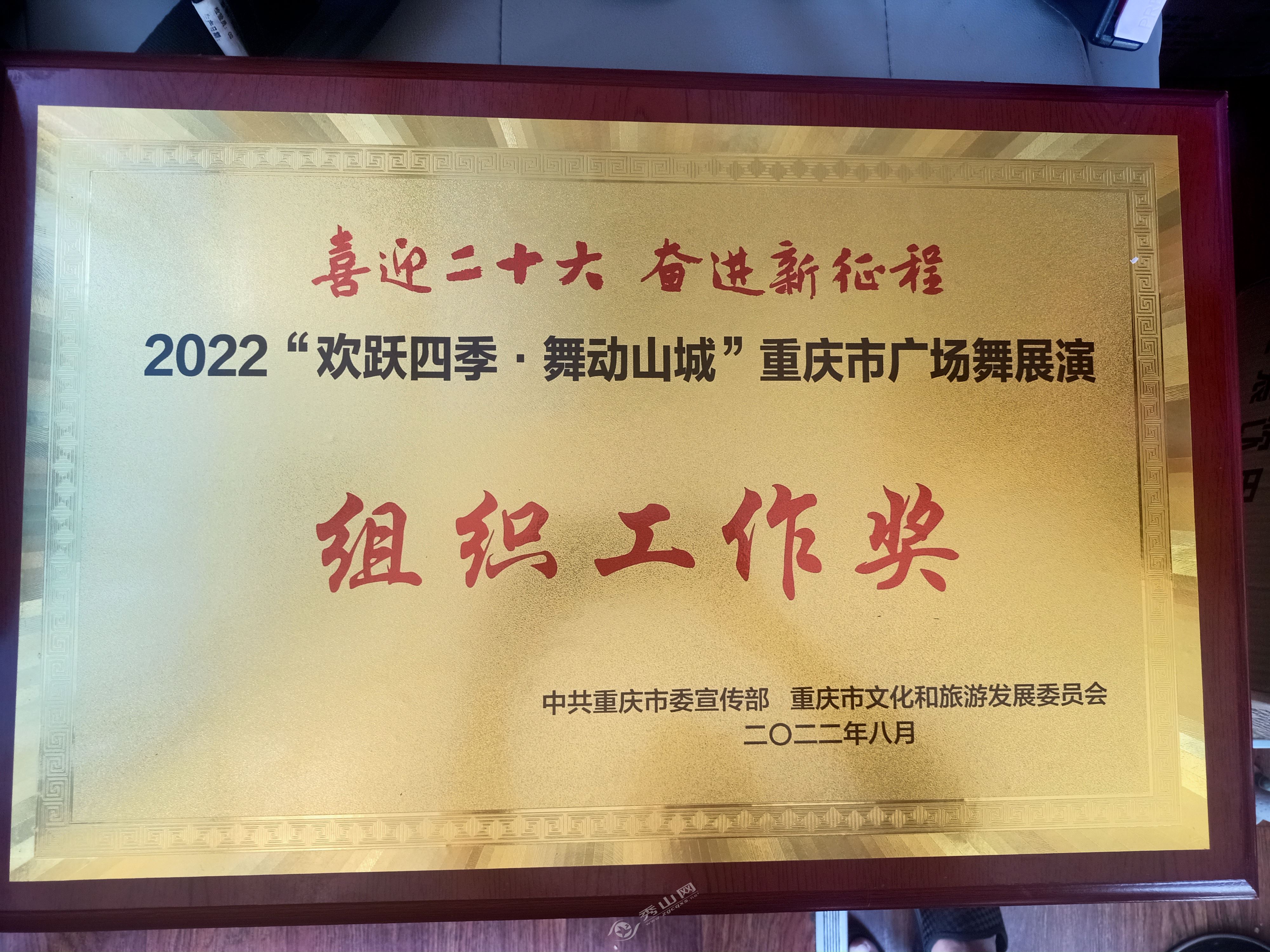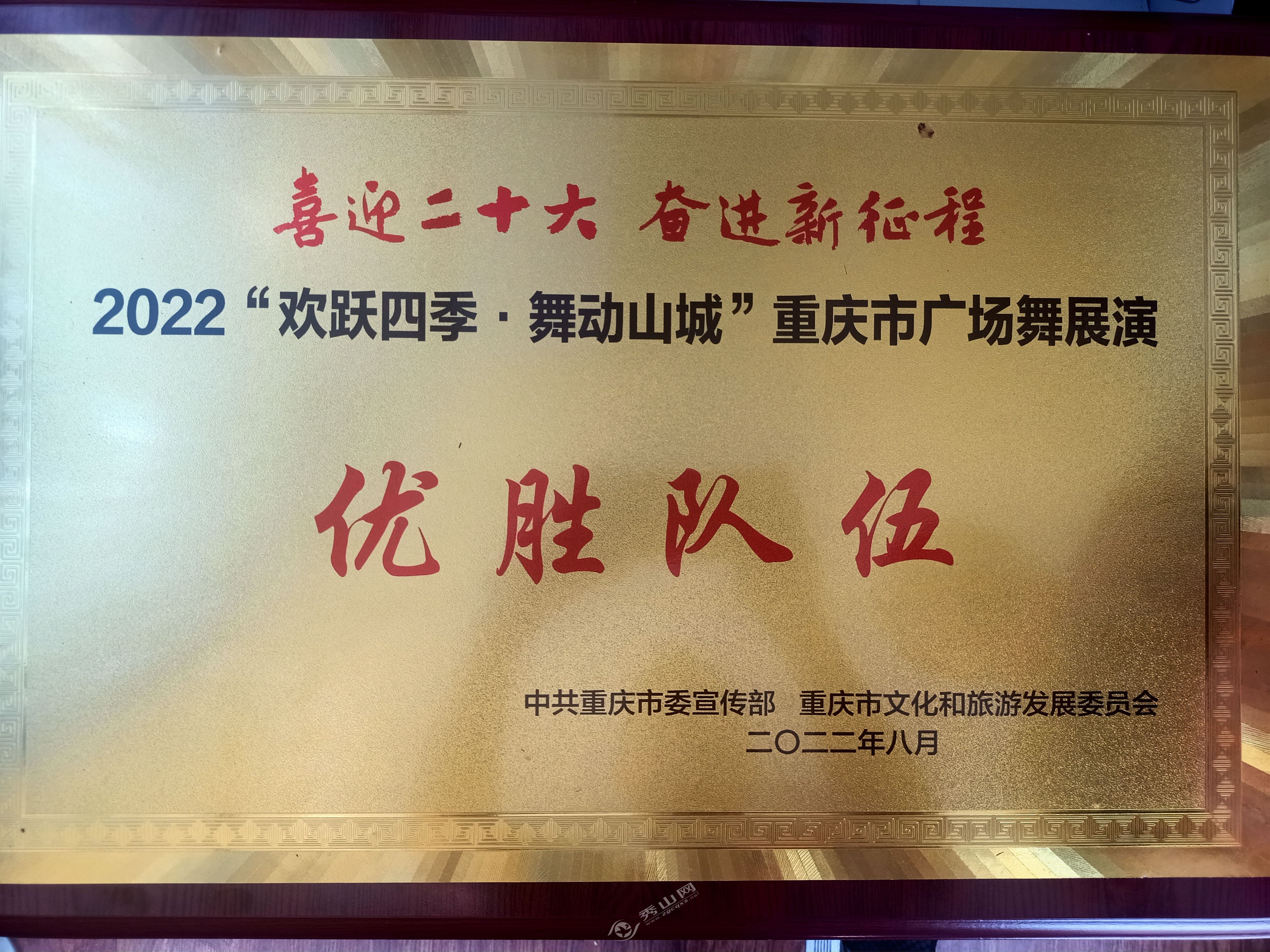 秀山网讯 8月12日上午,由中共重庆市委宣传部、重庆市文化和旅游发展委员会主办的“喜迎二十大 奋进新征程”--2022“欢跃四季•舞动山城”中国广电5G重庆市广场舞集中展演,在万盛黑山谷景区进行,来自全市的23支参赛队同台竞技,我县中和街道同心乐艺术团不负众望,经过“规定舞蹈”“自选舞蹈”“优胜比拼”三个环节的精彩展示,获得“优胜队伍”称号,县文化旅游委获“组织工作奖”。