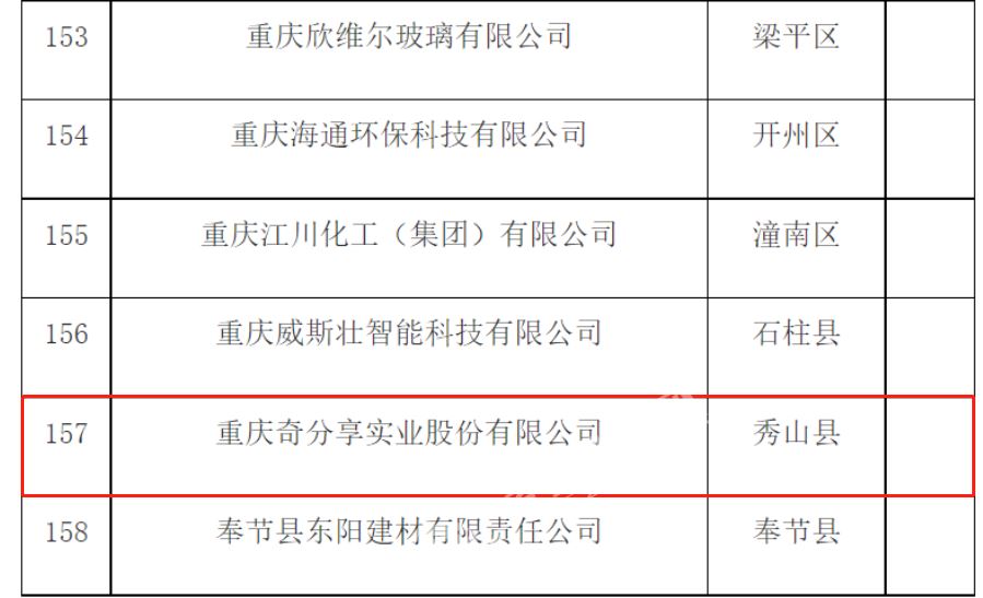 秀山网讯 为加快实施创新驱动发展战略,推进以企业为主体的技术创新体系建设,近日,市经济信息委、市财政局、市税务局、重庆海关正式公布名单,确定全市158家企业的技术中心为2022年度重庆市认定企业技术中心,我县重庆奇分享实业股份有限公司上榜。