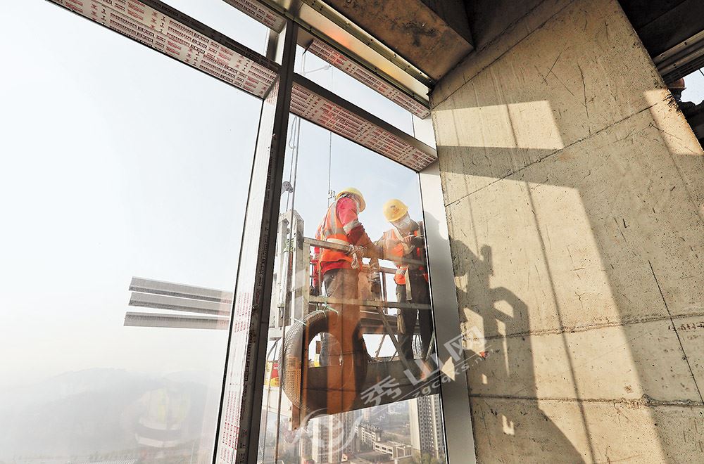 11月19日,市级重点项目重庆悦来中心(会展总部基地)项目工地,中建八局在闭环管理下,保证项目有序推进。图为技术工人在进行装修施工。记者 罗斌 摄/视觉重庆