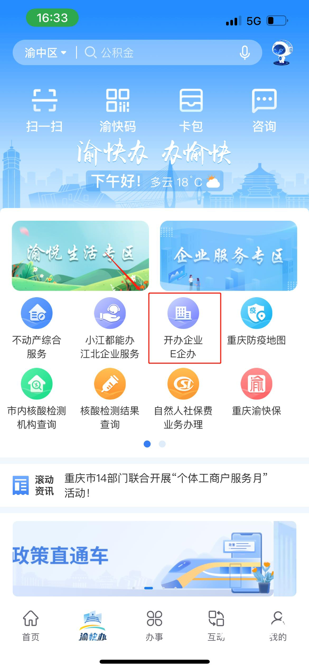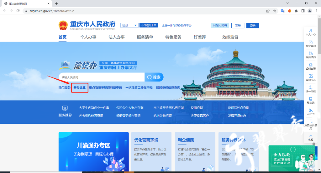 市民可以登录重庆市网上办事大厅(http://zwfw.cq.gov.cn/)或重庆市政府APP“渝快办”,根据系统智能提示,即可全程线上办理企业开办、变更、注销登记和食品经营许可等业务。