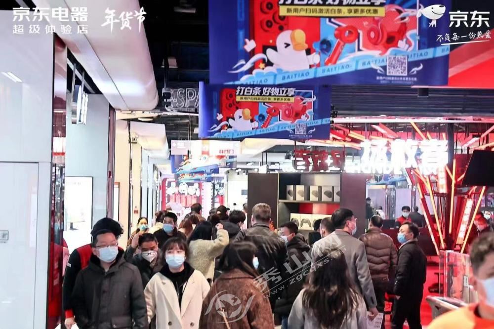 ▲京东电器超级体验店重庆店举办年货节,吸引了不少人去购物。