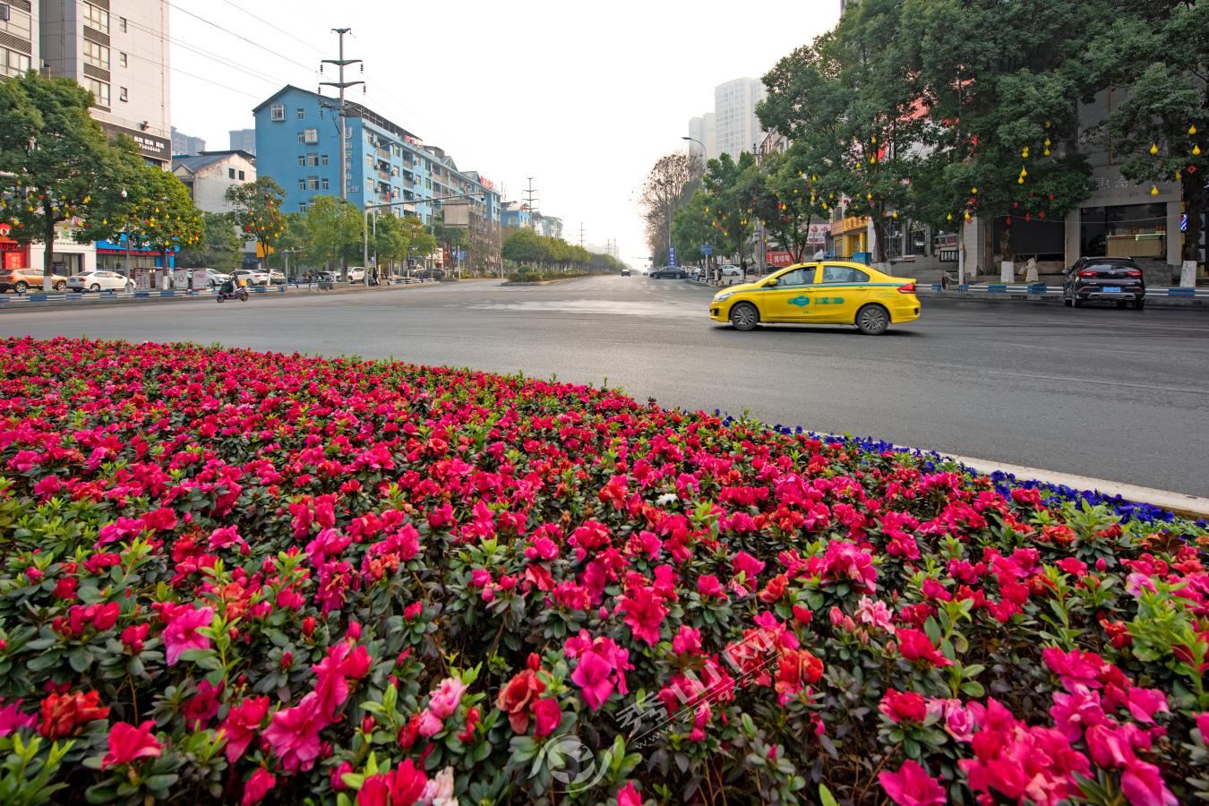 县城市管理局因地制宜,根据不同区域特点采用自然式的花境、规则式的色块、花箱花架花卉等多种形式,选配西洋鹃、月季、三色堇、石竹等花卉植物,打造具有特色、亮点的花卉景观。一簇簇鲜艳绽放的花朵,一个个喜庆的造型,让城市生意盎然、生机勃勃,节日的气氛越发浓烈。