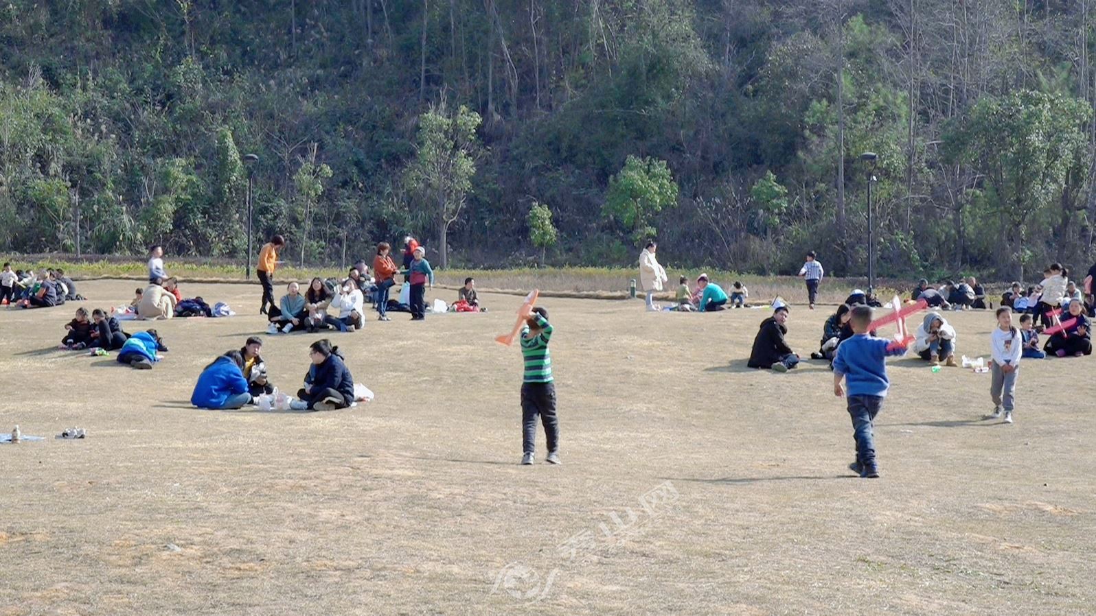 1月29日,记者在凤凰山景区看到,前来游玩的市民众多。草场上,孩子们溜上蹿下,玩得不亦乐乎;大人们则坐着拉家常,尽情享受冬日阳光。