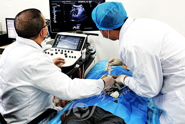 该科室副主任蔡成林介绍:B超引导下经皮胰腺穿刺活检术,是胰腺肿瘤诊断的“金标准”。而由于胰腺是间腹膜脏器,周围解剖结构复杂,前方有胃、肠、肝脏等脏器;血管密布,出血、胰漏、感染等并发症发生的风险较高,胰腺穿刺活检术往往被认为是最困难的穿刺活检术之一,对医生的水平和经验有着极高的要求。目前,科室能独立开展部位穿刺活检、化疗、PD-1/PD-L1治疗(俗称免疫治疗)、各种靶向治疗恶性肿瘤。