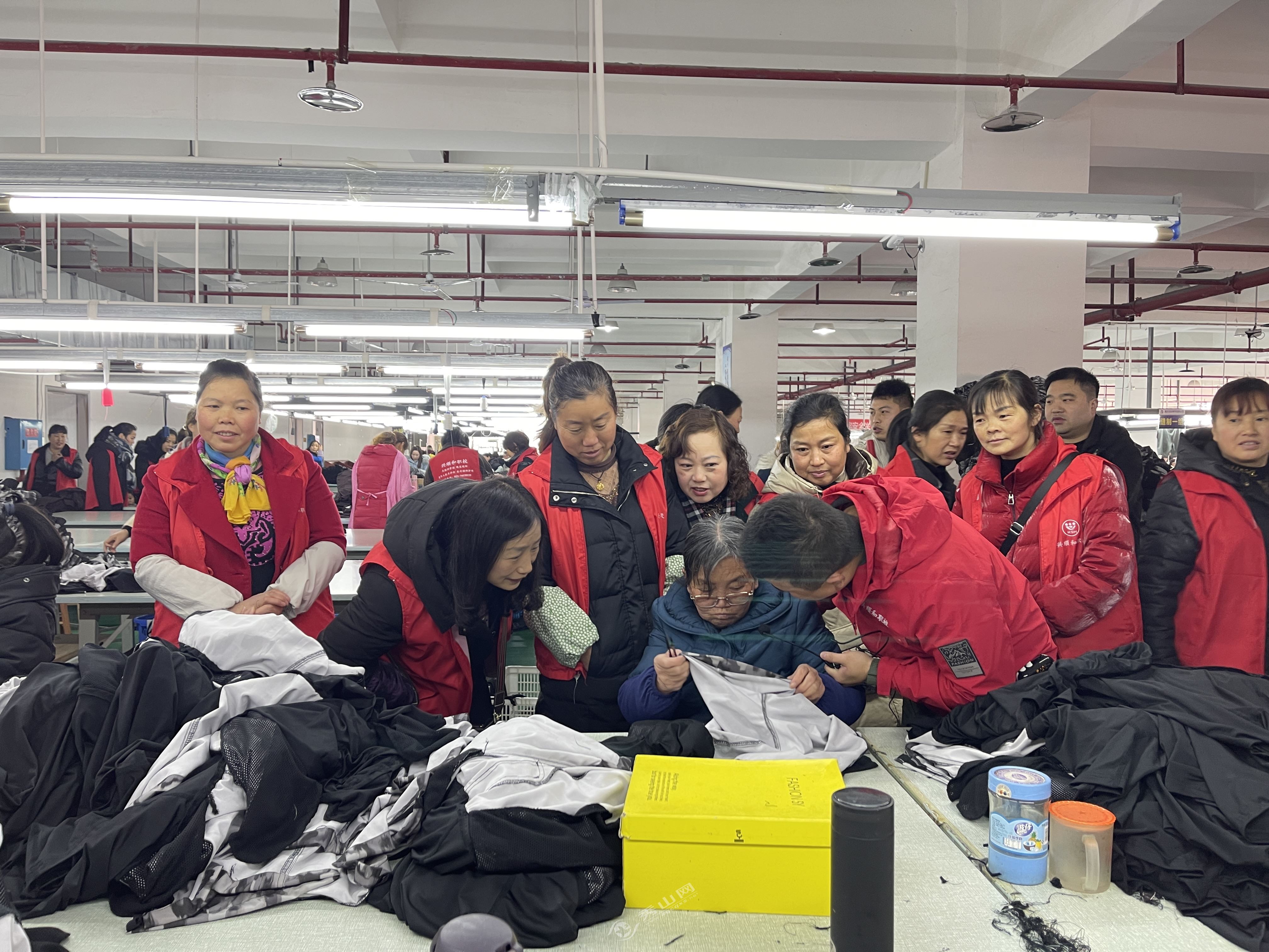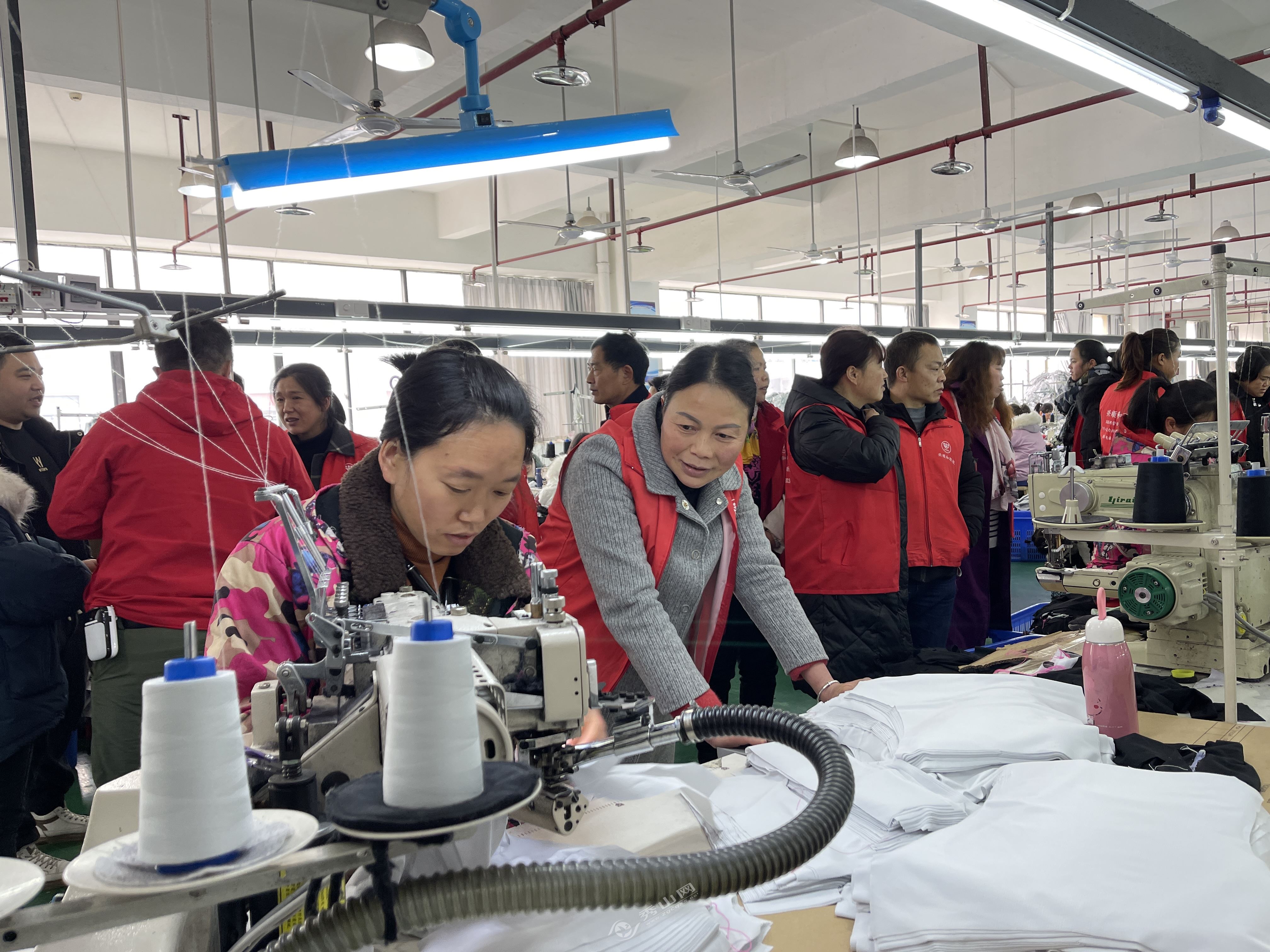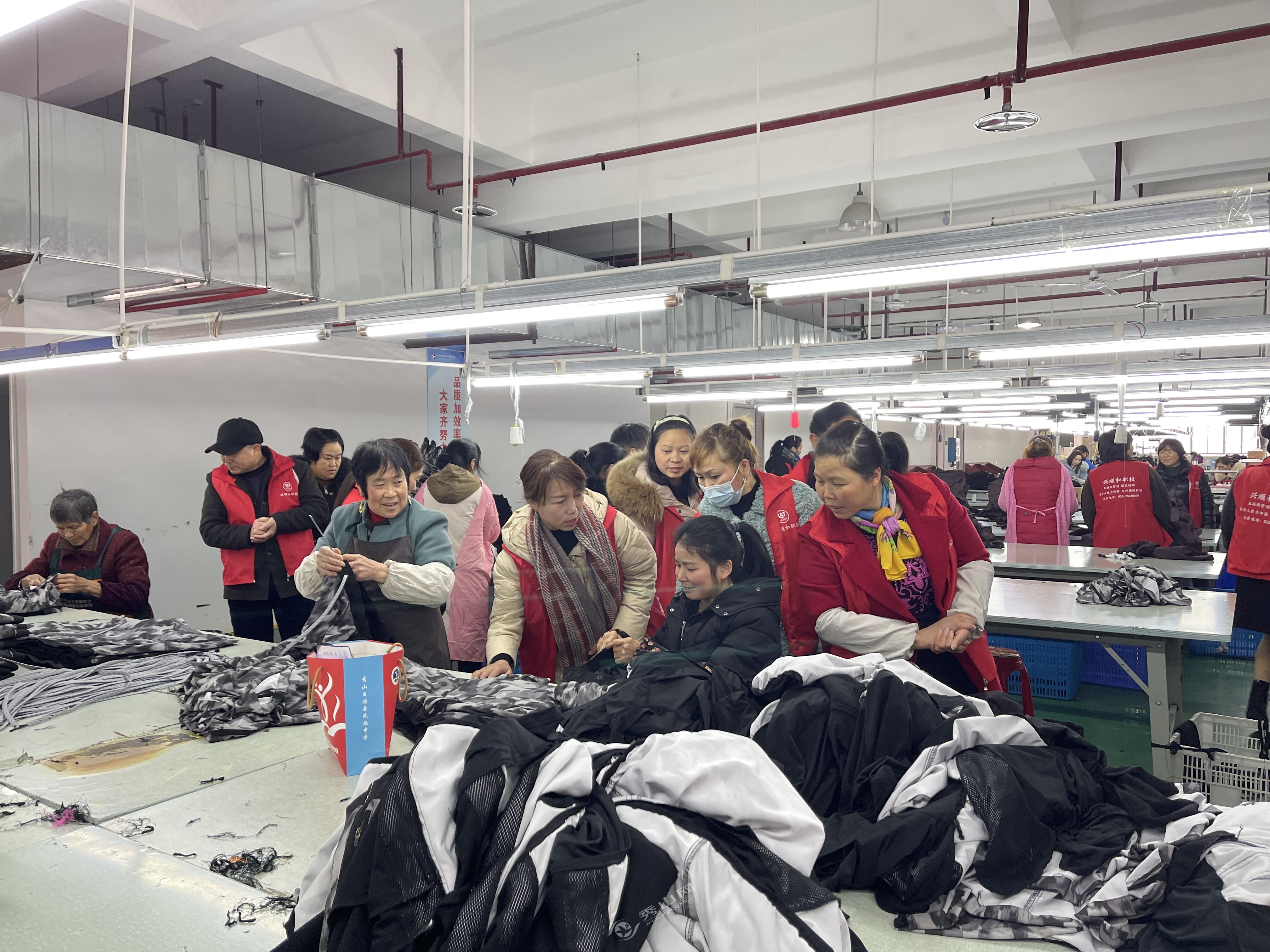秀山网讯 近日,记者在秀山高新区佰跃服装厂看到,来自秀山县兴顺和职业培训学校的40余名学员走进企业,实地参观,现场选岗。在生产车间,学员边参观边询问,详细了解用工岗位、生产制作流程、薪资待遇等情况。