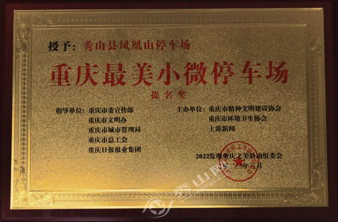 秀山网讯 3月19日,2022“发现重庆之美”活动评选出的重庆最美小微停车场、重庆最美山城绿道等奖项揭晓。秀山凤凰山停车场荣获“重庆最美小微停车场”提名奖。