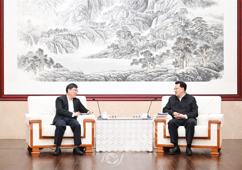 ▲4月20日上午,市委书记袁家军会见交通银行党委书记、董事长任德奇一行。