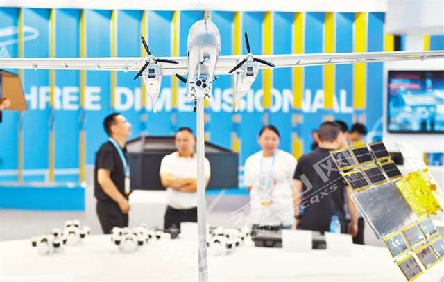 ▲5月18日,重庆国博中心,第五届西洽会四川展台,客商正在了解航天设备。