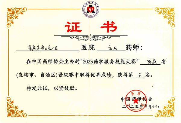 秀山网讯 日前,在中国药师协会主办的“2023药学服务技能大赛”重庆市晋级赛中,秀山县人民医院代表队获三等奖,成为渝东南片区唯一获奖医院。