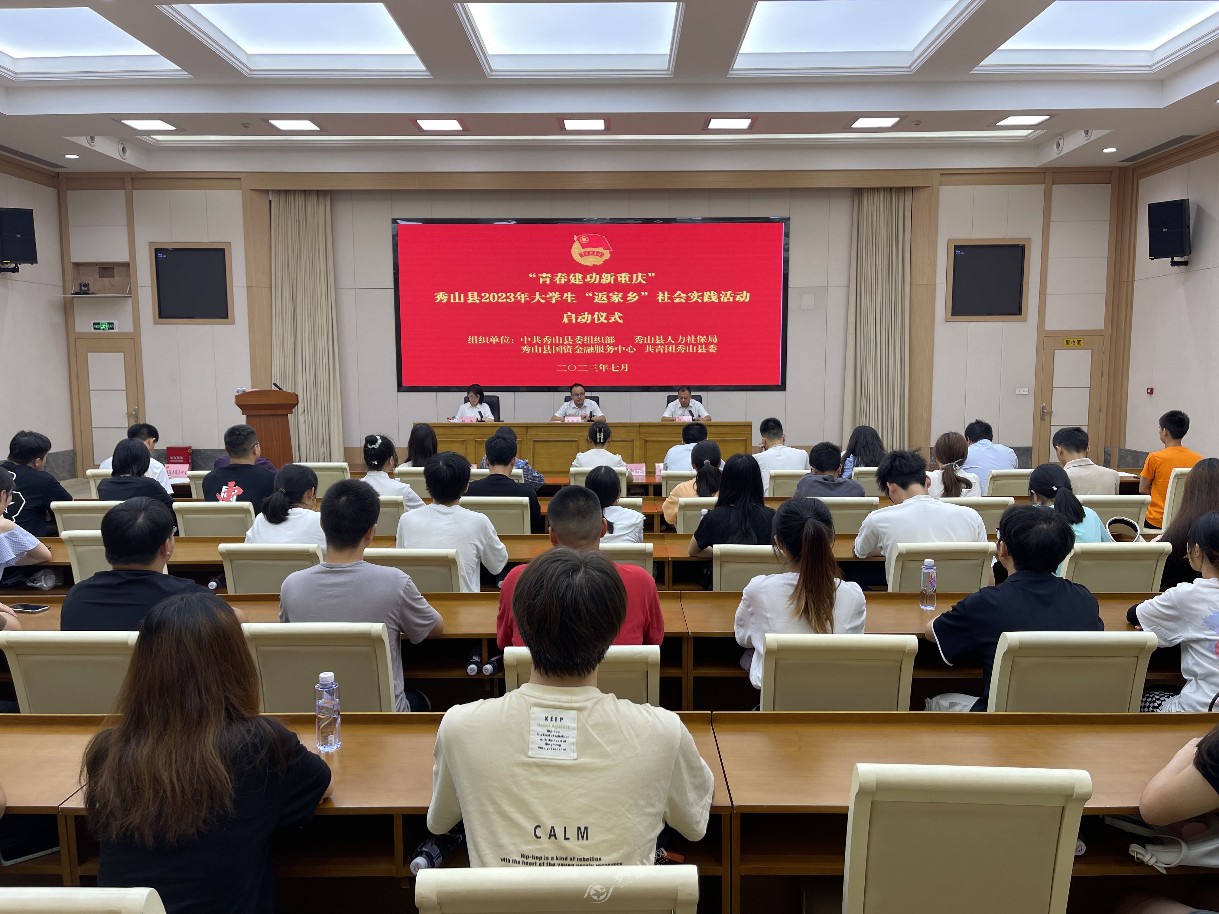 秀山网讯 7月11日上午,由县委组织部、县人力社保局、县国资金融服务中心、团县委联合开展的“青春建功新重庆”秀山县2023年大学生“返家乡”社会实践活动正式启动。